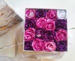 Arreglo de cumpleaños hecha de mano en nuestro taller con 16 rosas textiles hechas a mano, eso te durará para siempre. Arreglo es talla medio y colorido, para el deleite de todos los ojos.