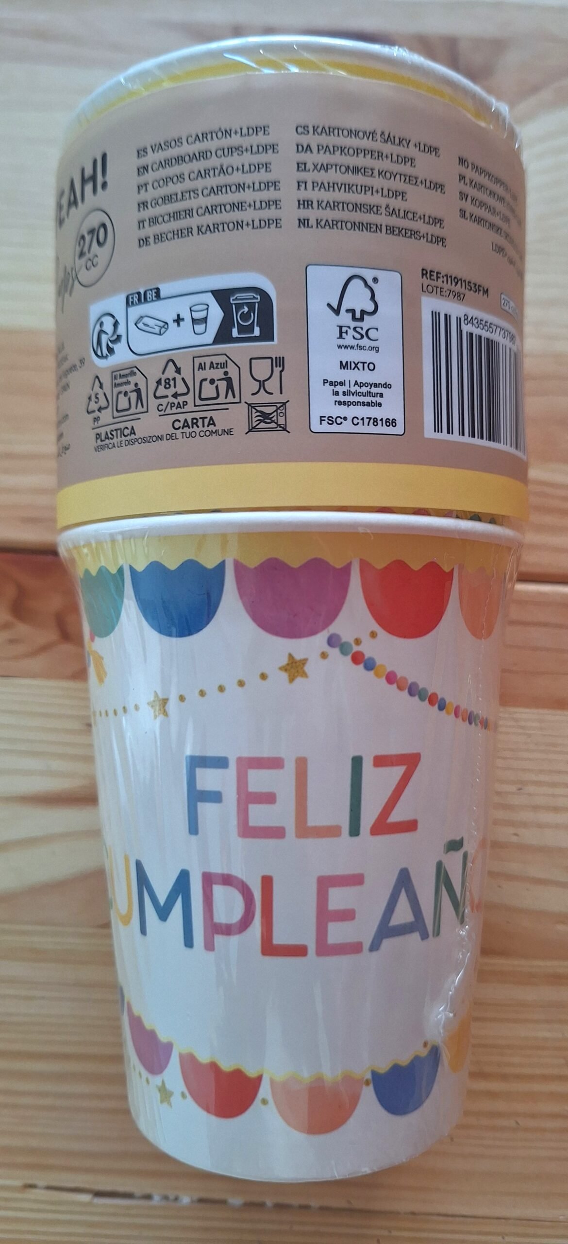 - 10 x tazas de cartón con inscripción FELIZ CUMPLEAÑOS