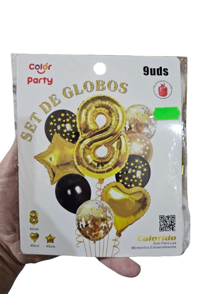Incluye número inflable y 8 globos.