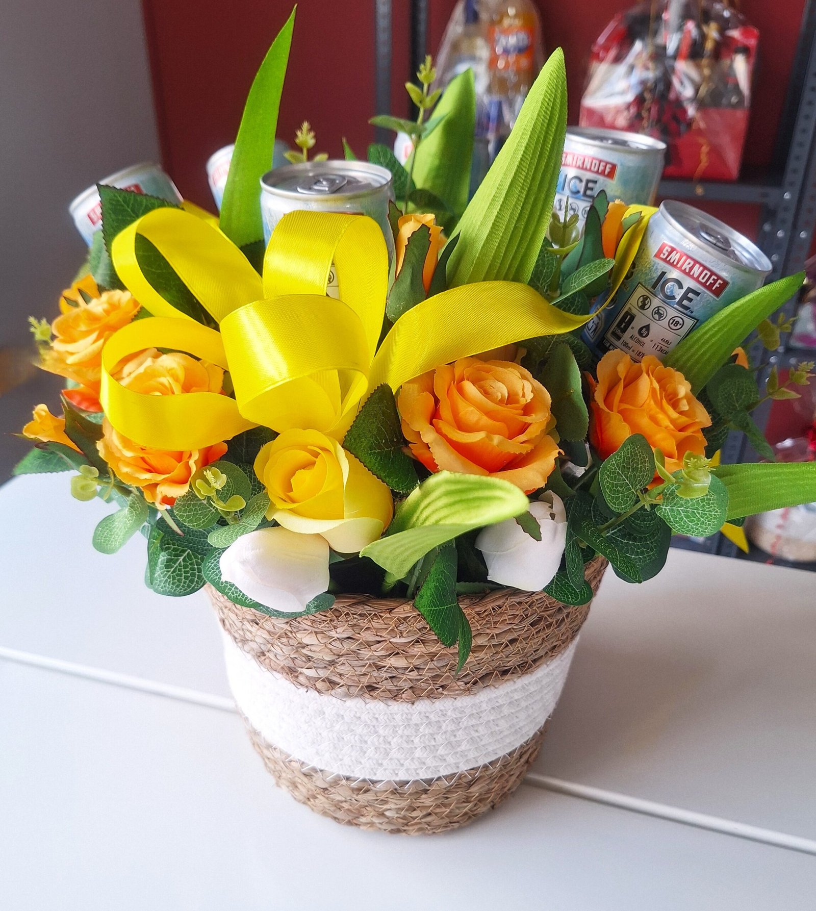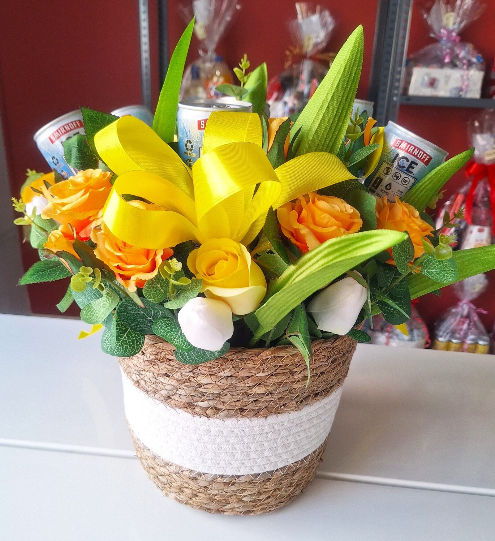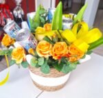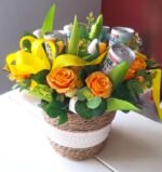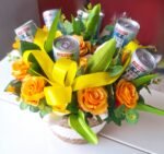 Arreglo de cumpleaños y aniversario hecha de mano en nuestro taller com flores textiles, eso te durará para siempre. Arreglo es talla grande y colorido, para el deleite de todos los ojos.